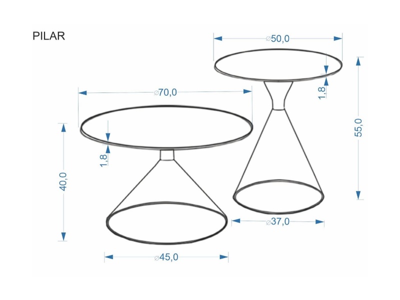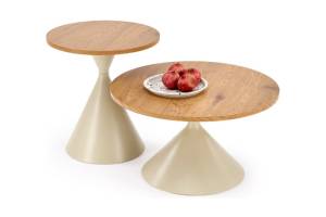 Set 2 masute PILAR din MDF furniruit travertin, otel vopsit in camp electrostatic casmir 70xH40cm 50xH55cm