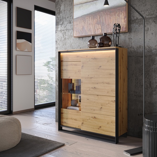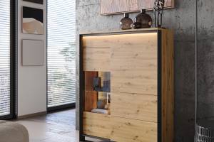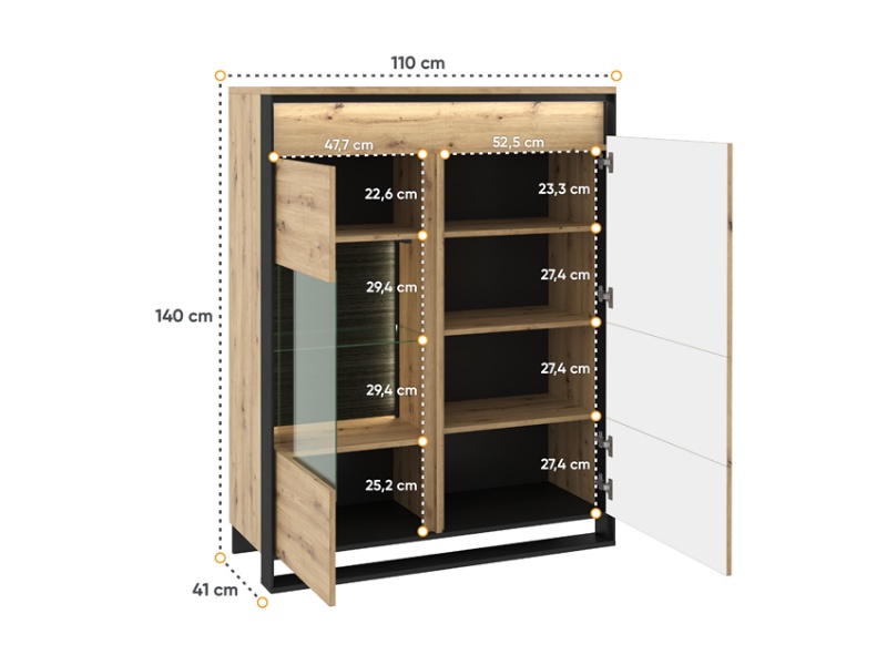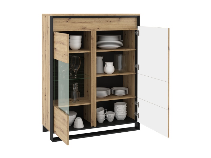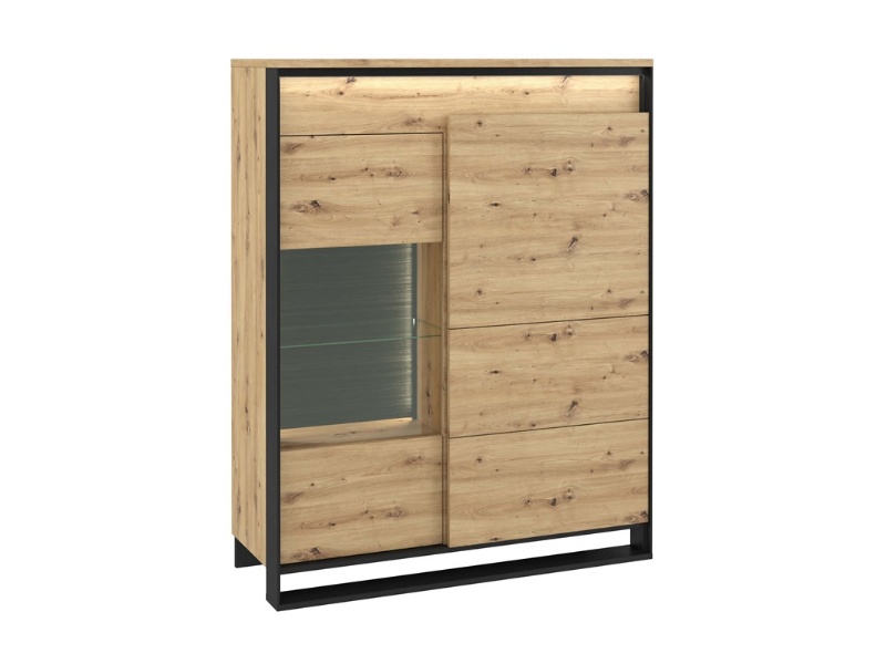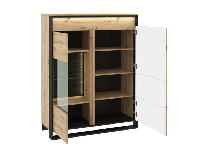 - vitrina inalta are iluminare LED atat in interiorul compartimentului cu sticla cat si in exterior in partea de sus