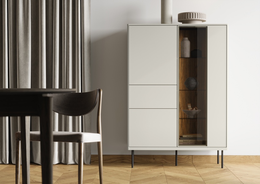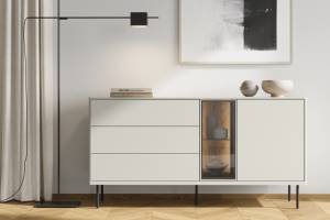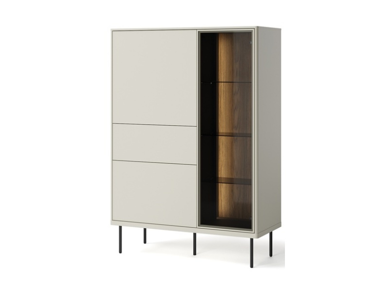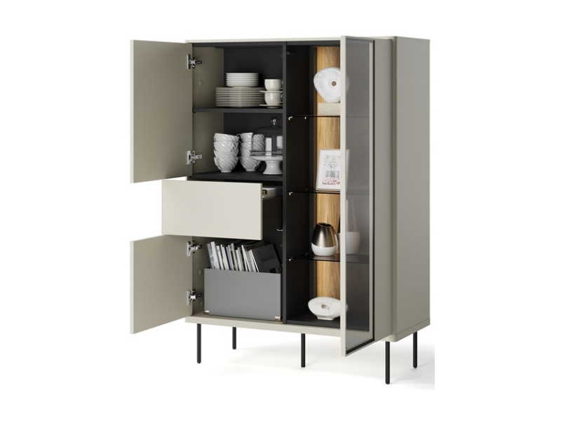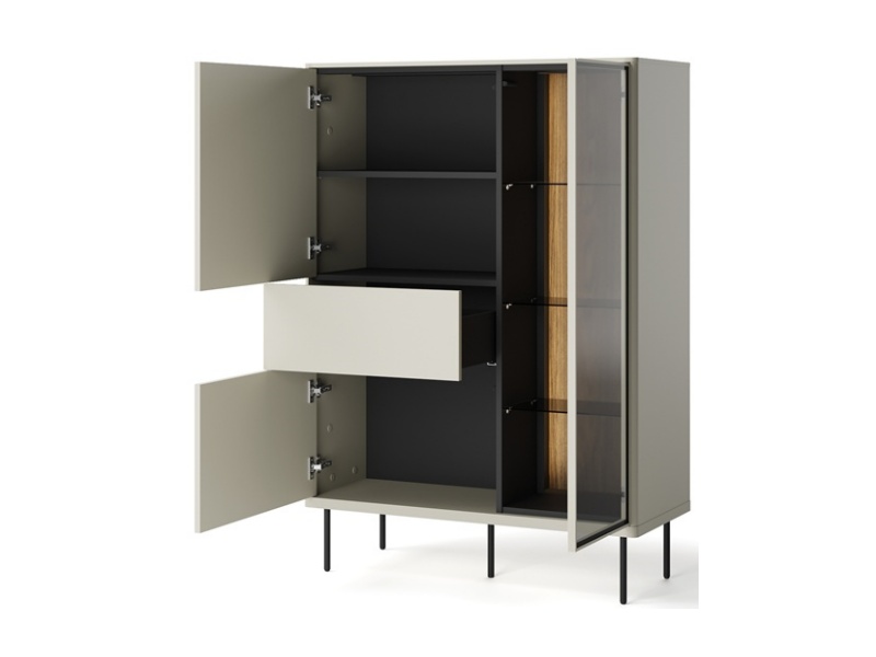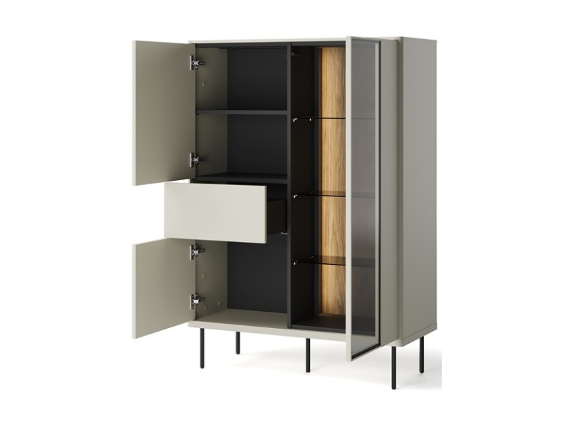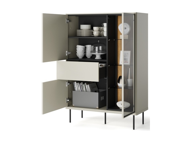 - sistem de iluminare LED in interiorul vitrinelor si comodei (usa cu sticla)