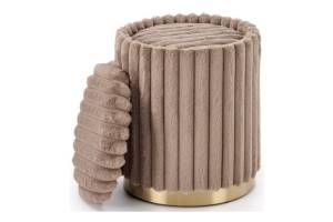 Set 2 tabureti FIDO material plusat-raiat cappuccino, cadru auriu, cu spatiu pentru depozitare 44xH36cm / 38xH31cm