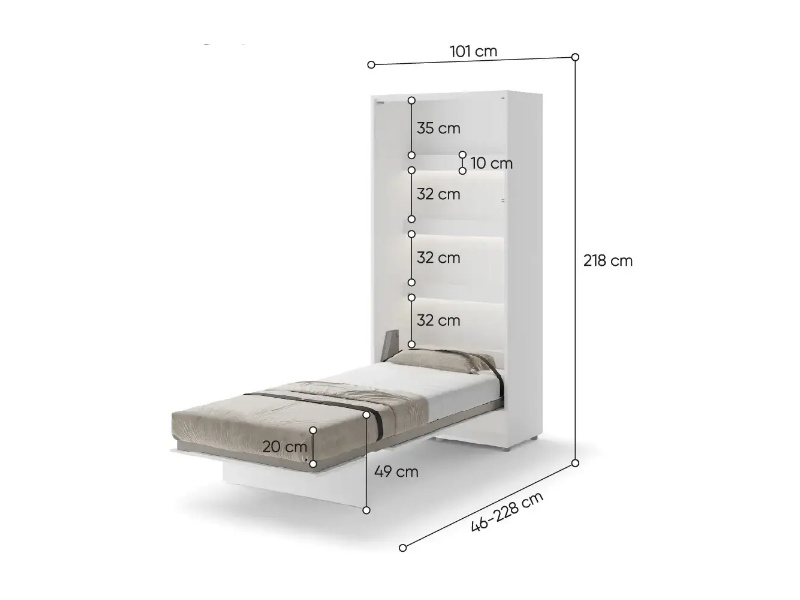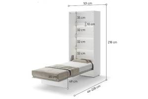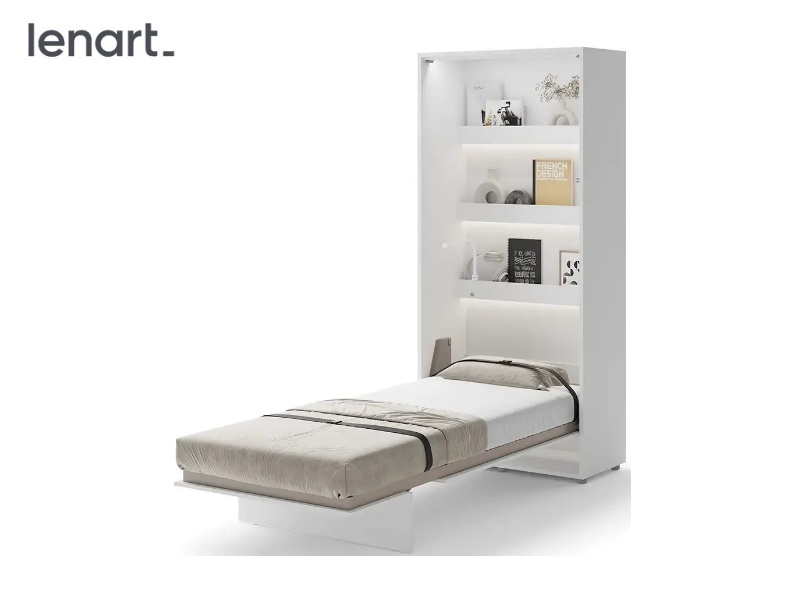 LENART BED CONCEPT BC-03 pat (90x200cm) rabatabil pe perete 101x46-228x218cm alb lucios