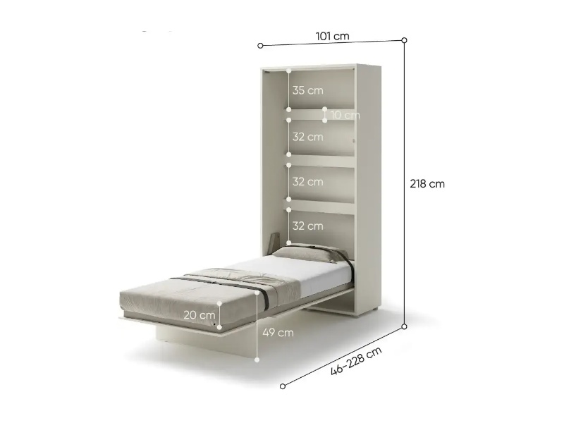 LENART BED CONCEPT BC-03 pat (90x200cm) rabatabil pe perete 101x46-228x218cm casmir
