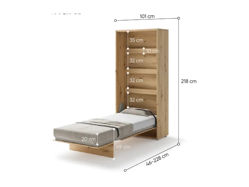 LENART BED CONCEPT BC-03 pat (90x200cm) rabatabil pe perete 101x46-228x218cm stejar Artisan