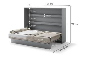 LENART BED CONCEPT BC-04 pat (140x200cm) rabatabil pe perete orizontal 211x46-168x158cm gri