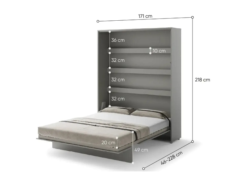 LENART BED CONCEPT BC-12 pat (160x200cm) rabatabil pe perete 171x46-228x218cm grey