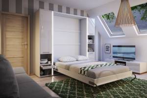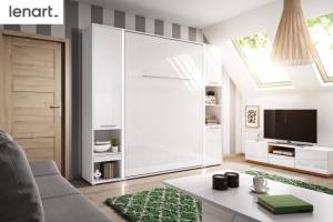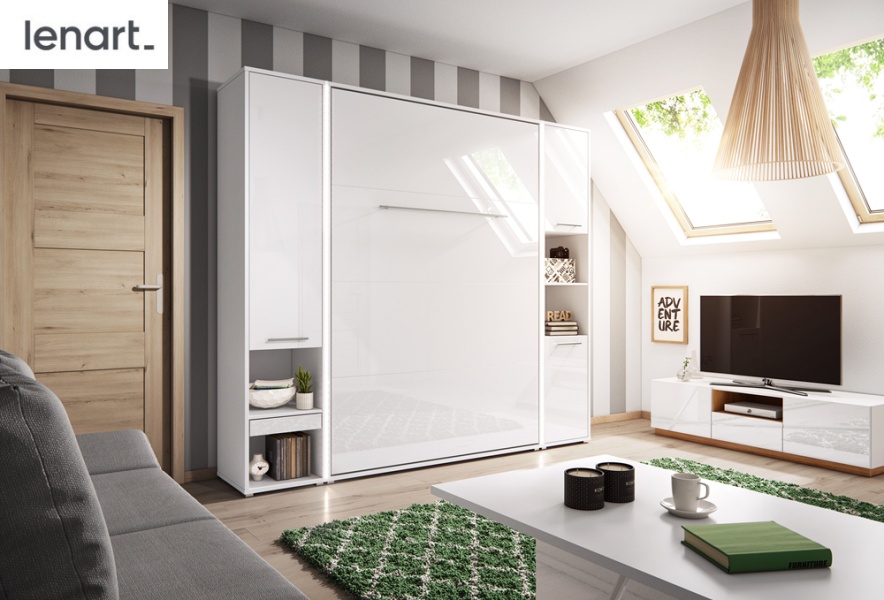 LENART PRO CONCEPT set pat (140x200cm) rabatabil pe perete cu 2 dulapuri 245x46-237x217cm alb alpin/ alb lucios