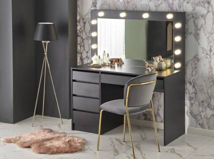 Masa de machiaj cu 5 sertare si oglinda cu led HOLLYWOOD XL BLACK 120x140x55cm negru
