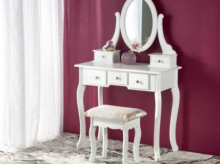 Masa de machiaj cu 2 sertare, oglinda si scaun POPRAD 100x160x45cm patina de pin/ maro miere