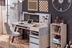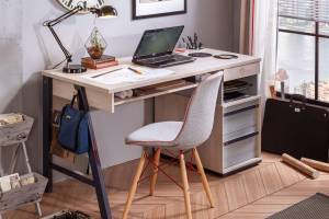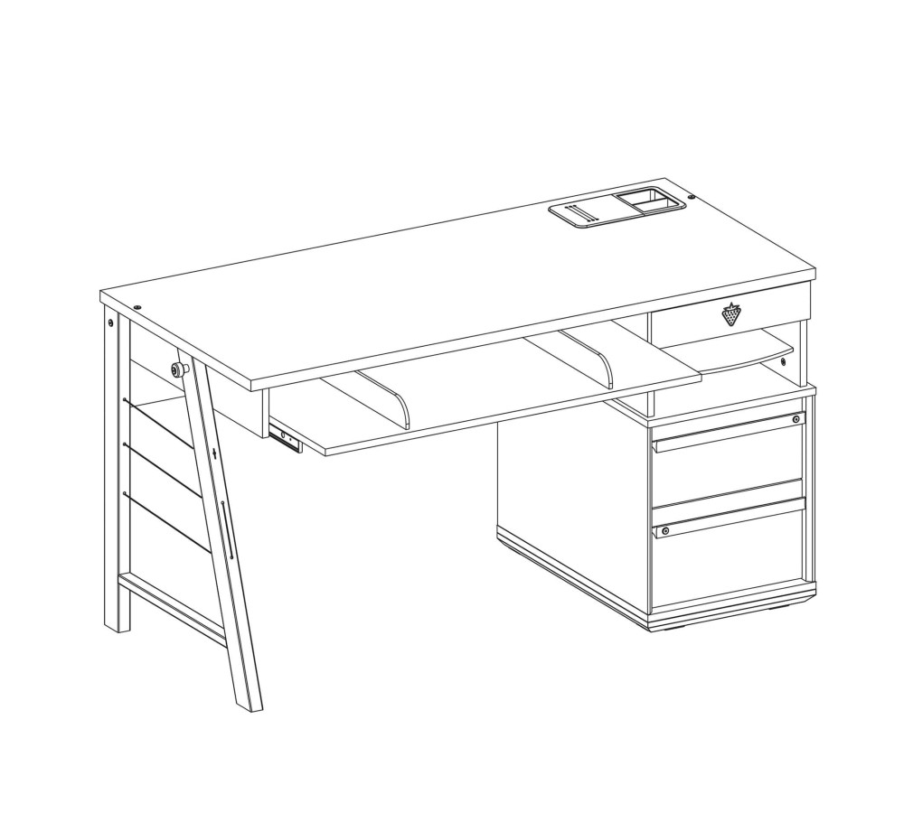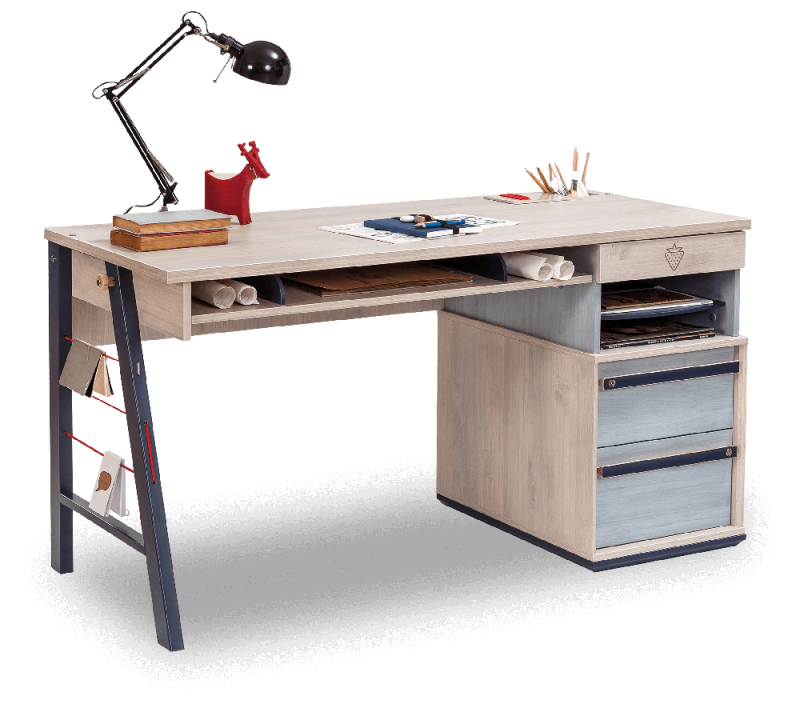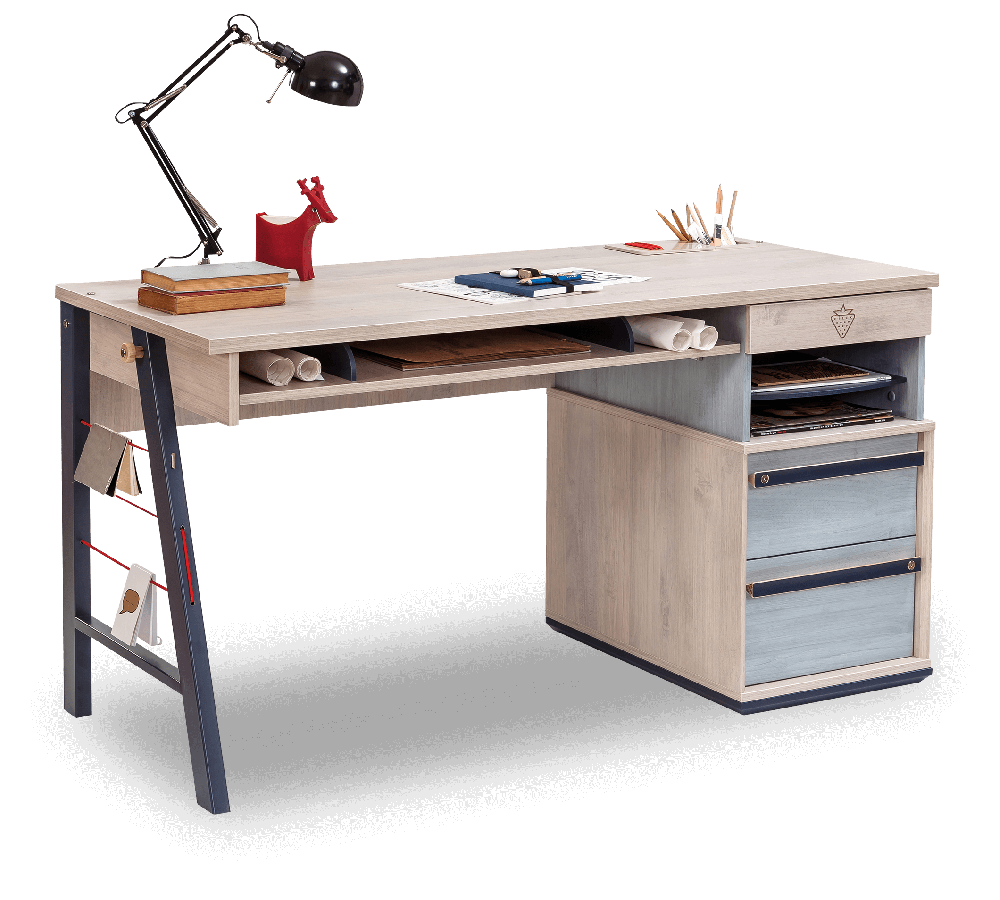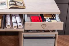 Biroul are doua spatii deschise, doua sertare adanci un serta mai mic pentru depozitare.