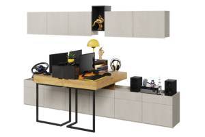 Set 2 birouri mici cu corpuri suspendate TEEN FLEX 04B 300x110x193cm cu 2 comode, sistem de iluminare LED