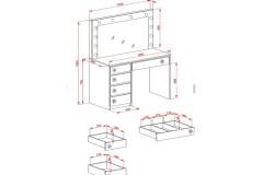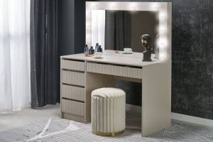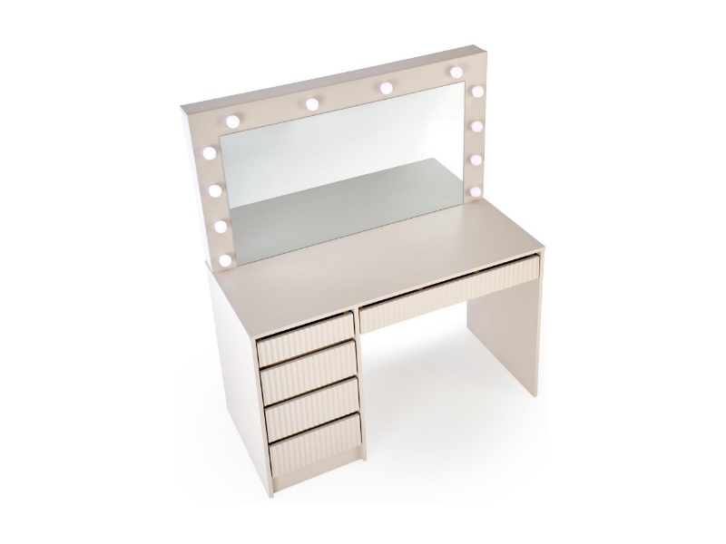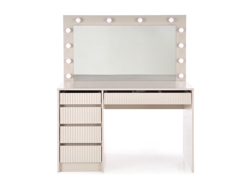 Masa de machiaj cu 5 sertare si oglinda cu led HOLLYWOOD 2 XL CASMIRE 120x140x55cm casmir