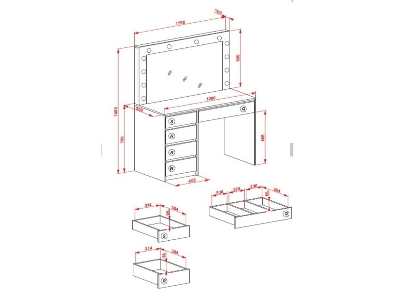Alte caracteristici: oglinda cu leduri pe margine, 5 sertare