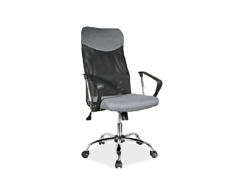 - Scaunul este realizat din material textil gri + plasa neagra.