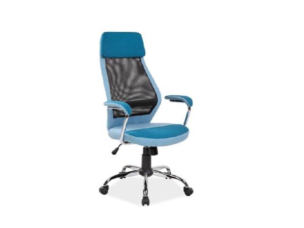 - Scaunul este realizat din material textil albastru + plasa neagra.