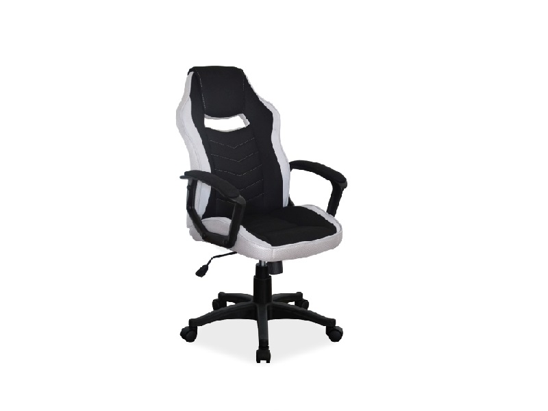 - Scaunul este realizat din material textil negru/gri.