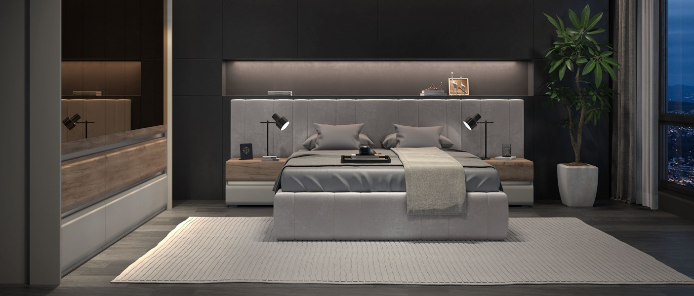 - În acest tip de dormitor este de preferat să mergi pe varianta unui covor mai mic pe care să îl poziționezi sub pat.