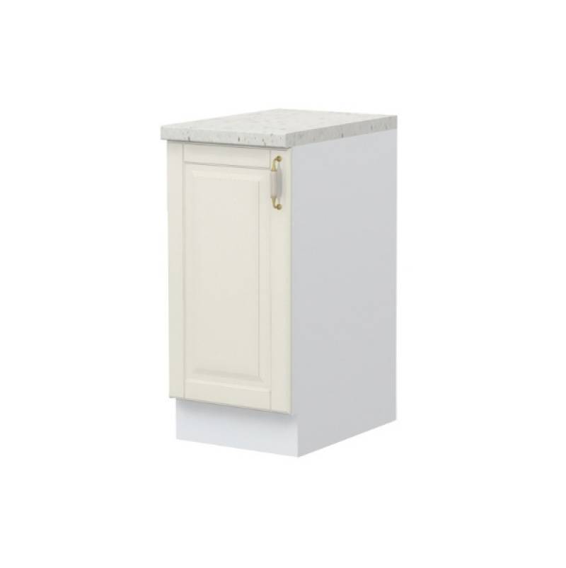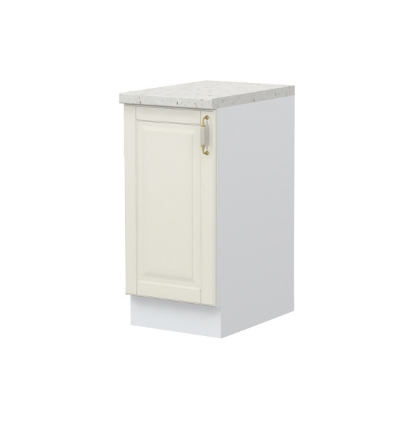 - Partea frontală a elementului este realizată dintr-un MDF complet lacuit UV, cu un efect mat moale de culoare fildeș