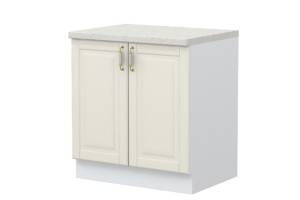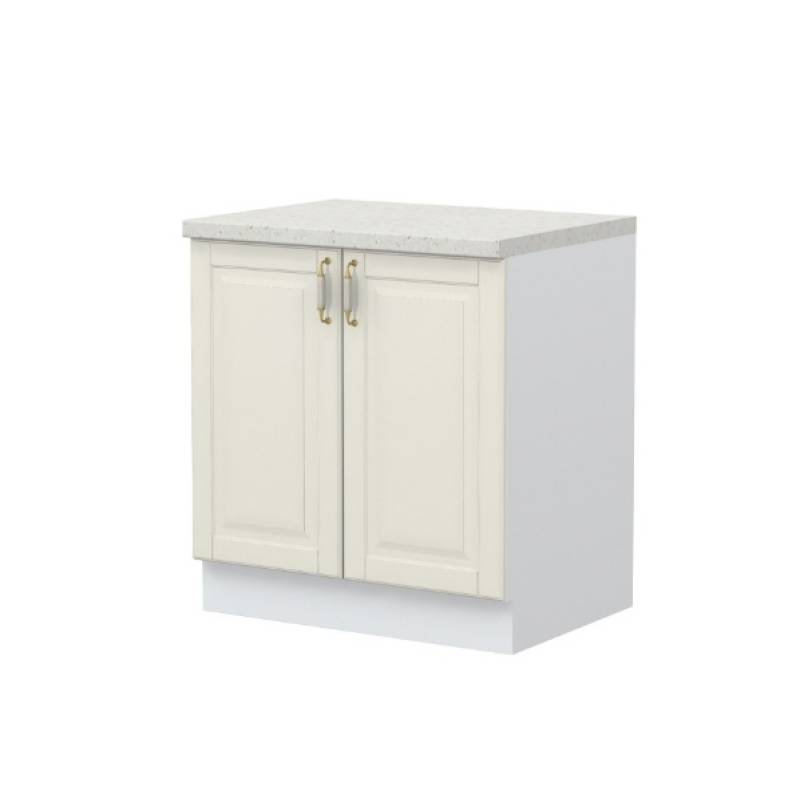 - Partea frontală a elementului este realizată dintr-un MDF complet lacuit UV, cu un efect mat moale de culoare fildeș