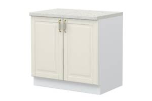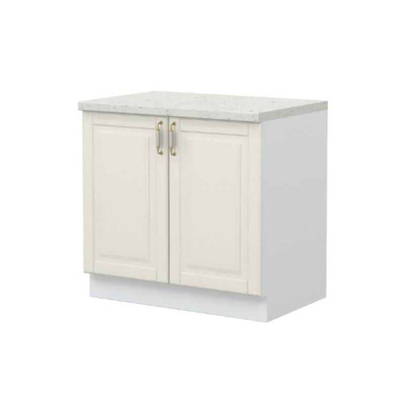 - Partea frontală a elementului este realizată dintr-un MDF complet lacuit UV, cu un efect mat moale de culoare fildeș