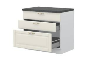 - Partea frontală a elementului este realizată dintr-un MDF complet lacuit UV, cu un efect mat moale de culoare fildeș
