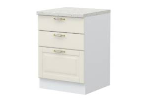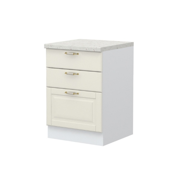- partea frontală a elementului este realizată dintr-un MDF complet lacuit UV, cu un efect mat moale de culoare fildeș