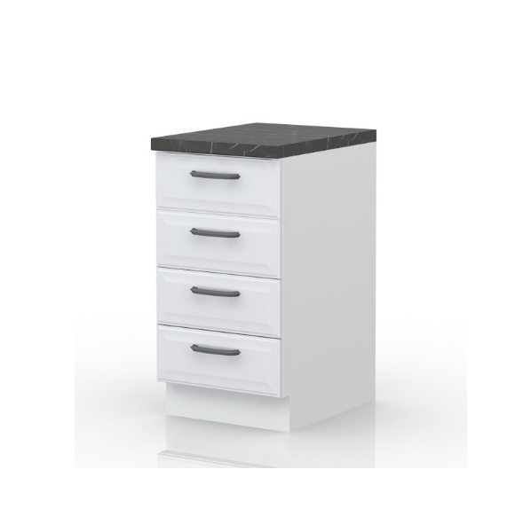 - Fata din MDF (19mm) profilat, lacuita cu lac UV, decor gri mat Perla