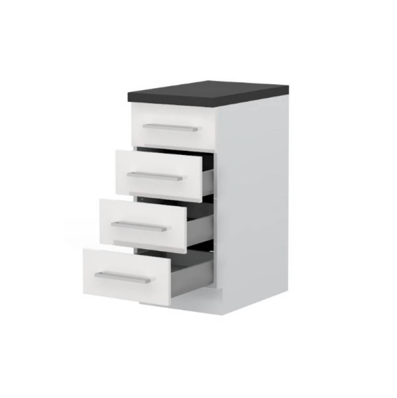 - Partea frontală a elementului este din MDF profilat, infoliat (nuante disponibile: alb lucios sau bej lucios) (18mm)