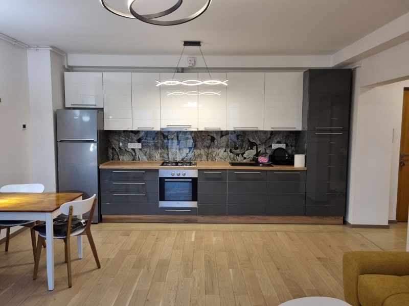 - Partea frontală a elementelor este din MDF profilat cu folie lucioasă în orice culoare din paleta de culori oferită