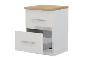- Partea frontală a elementului este din MDF profilat, infoliat (nuante disponibile: alb lucios sau bej lucios) (18mm)