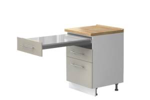 - Partea frontală a elementului este din MDF profilat, infoliat (nuante disponibile: alb lucios sau bej lucios) (18mm)