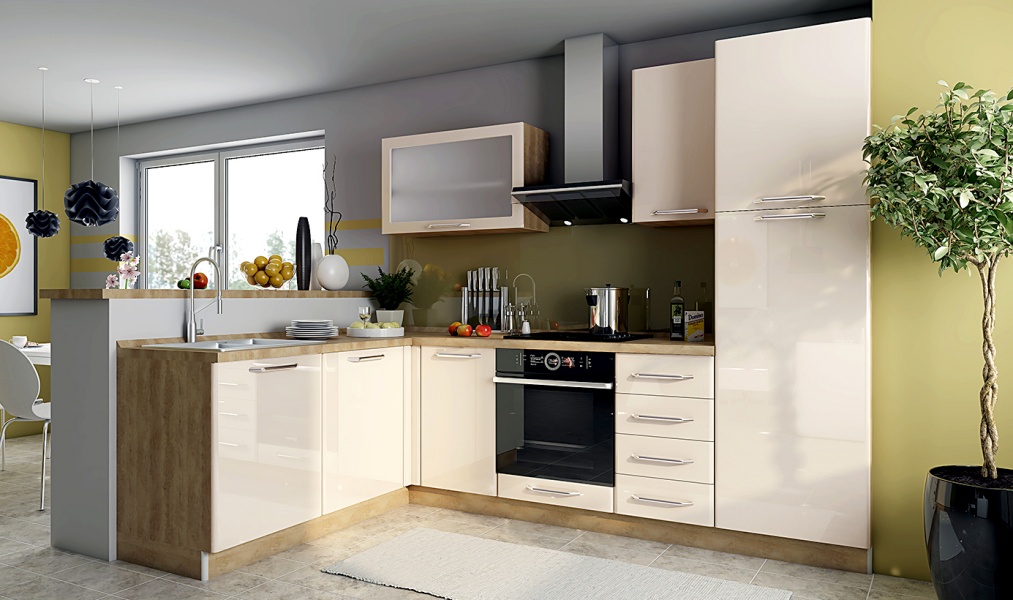 - Partea frontală a elementului este din MDF profilat cu folie lucioasă în orice culoare din paleta de culori oferită
