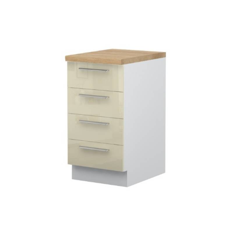 - Partea frontală a elementului este din MDF profilat, infoliat (nuante disponibile: alb lucios sau bej lucios) (18mm)