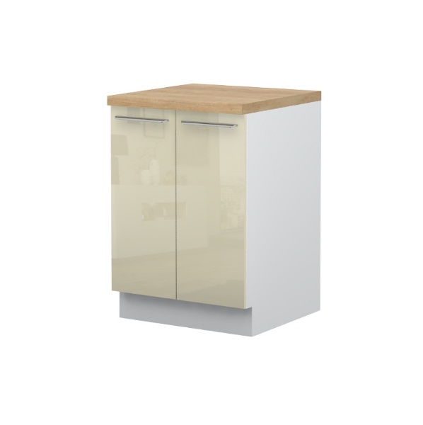 - Partea frontală a elementului este din MDF profilat, infoliat (nuante disponibile: alb lucios sau bej lucios) (18mm)