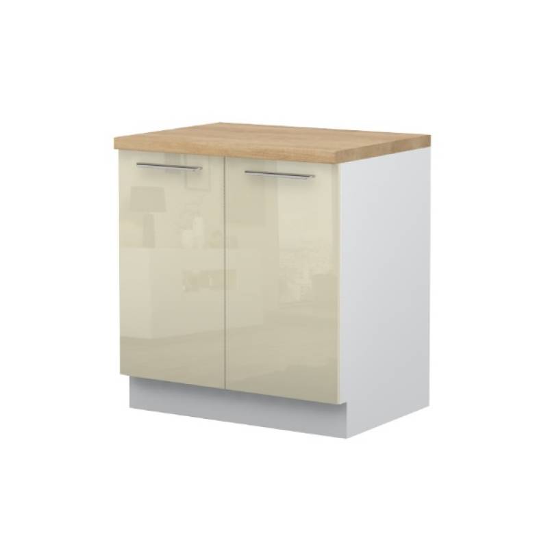 - Partea frontală a elementului este din MDF profilat, infoliat (nuante disponibile: alb lucios sau bej lucios) (18mm)