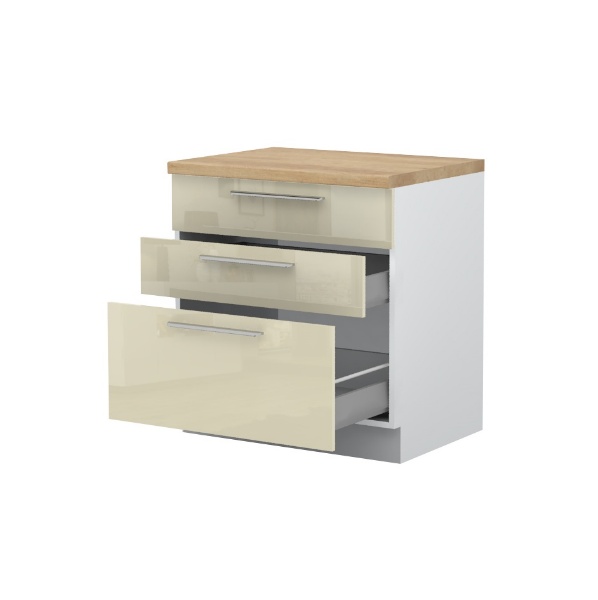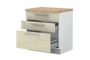 - Partea frontală a elementului este din MDF profilat, infoliat (nuante disponibile: alb lucios sau bej lucios) (18mm)