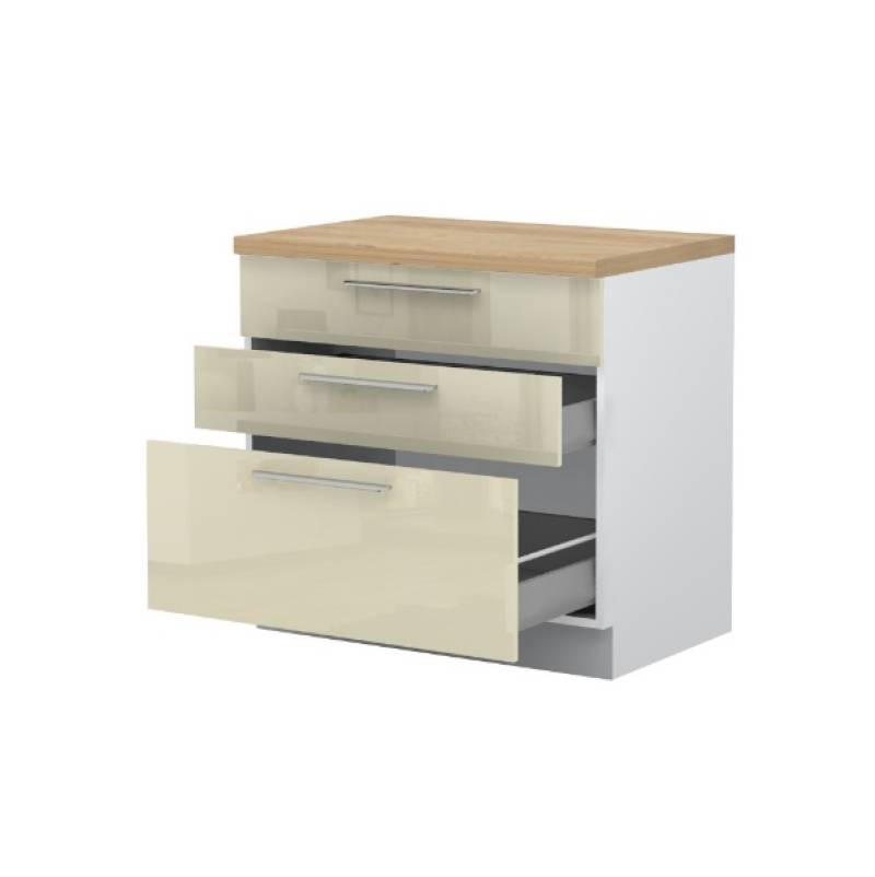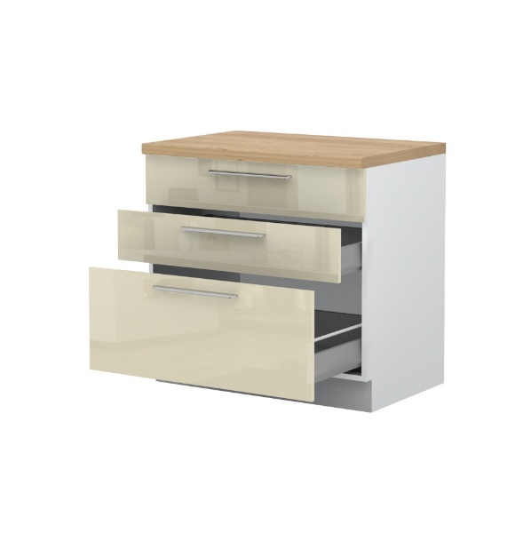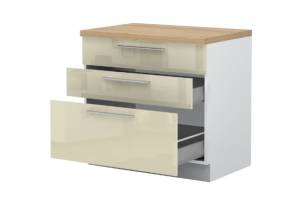 - Partea frontală a elementului este din MDF profilat, infoliat (nuante disponibile: alb lucios sau bej lucios) (18mm)
