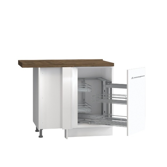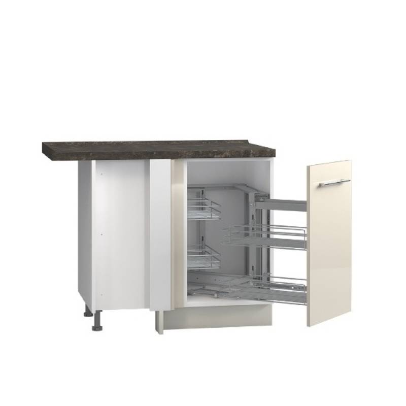 - Partea frontală a elementului este din MDF profilat, infoliat (nuante disponibile: alb lucios sau bej lucios) (18mm)