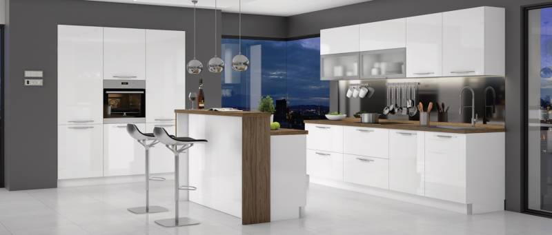 - Fronturile elementului sunt din PAL complet lăcuit cu lac UV cu luciu ridicat, în culoarea alb cristal