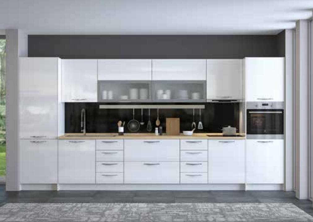 - Fronturile elementului sunt din PAL complet lăcuit cu lac UV cu luciu ridicat, în culoarea alb cristal