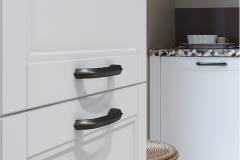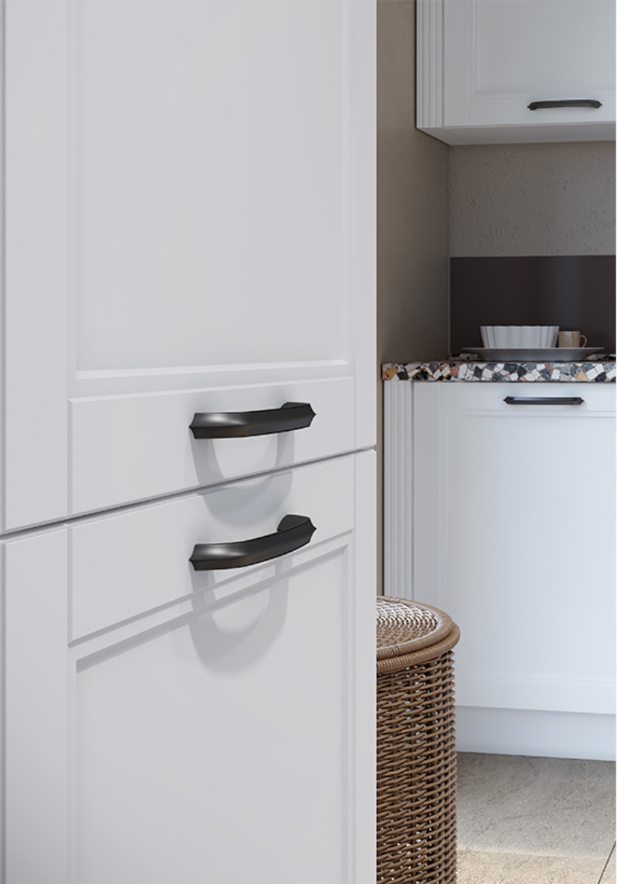 - Fronturile elementului sunt realizate din MDF sculptat complet lacuit cu lac UV de culoare grafit sau alb cu un efect mat moale.
