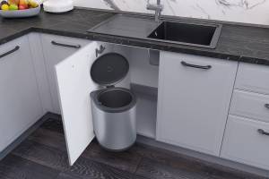 Cos de gunoi incorporabil KO, perfect pentru corpuri de baza cu usa mai mare de 40 cm. Ofera o solutie practica pentru eliminarea usoara si igienica a deseurilor in bucatarie. Compact si usor de instalat.