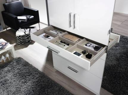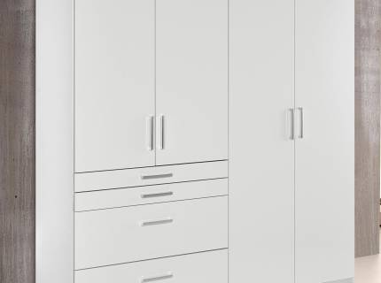 Dulap cu 4 usi cu balamale si 4 sertare HOMBURG 181x197x54cm alb alpin/ alb lucios, manere crom