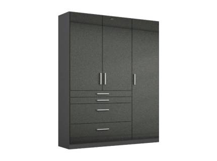 Dulap cu 3 usi cu balamale si 4 sertare HOMBURG 136x197x54cm gri metalic/ gri lucios, manere crom