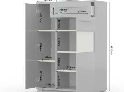 Vitrina medie cu sticla si 1 sertar PIANO BEIGE 60x123x40cm bej lucios - sticla, manere si picioare crom