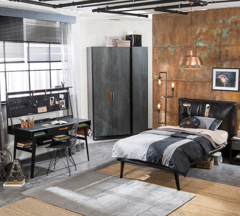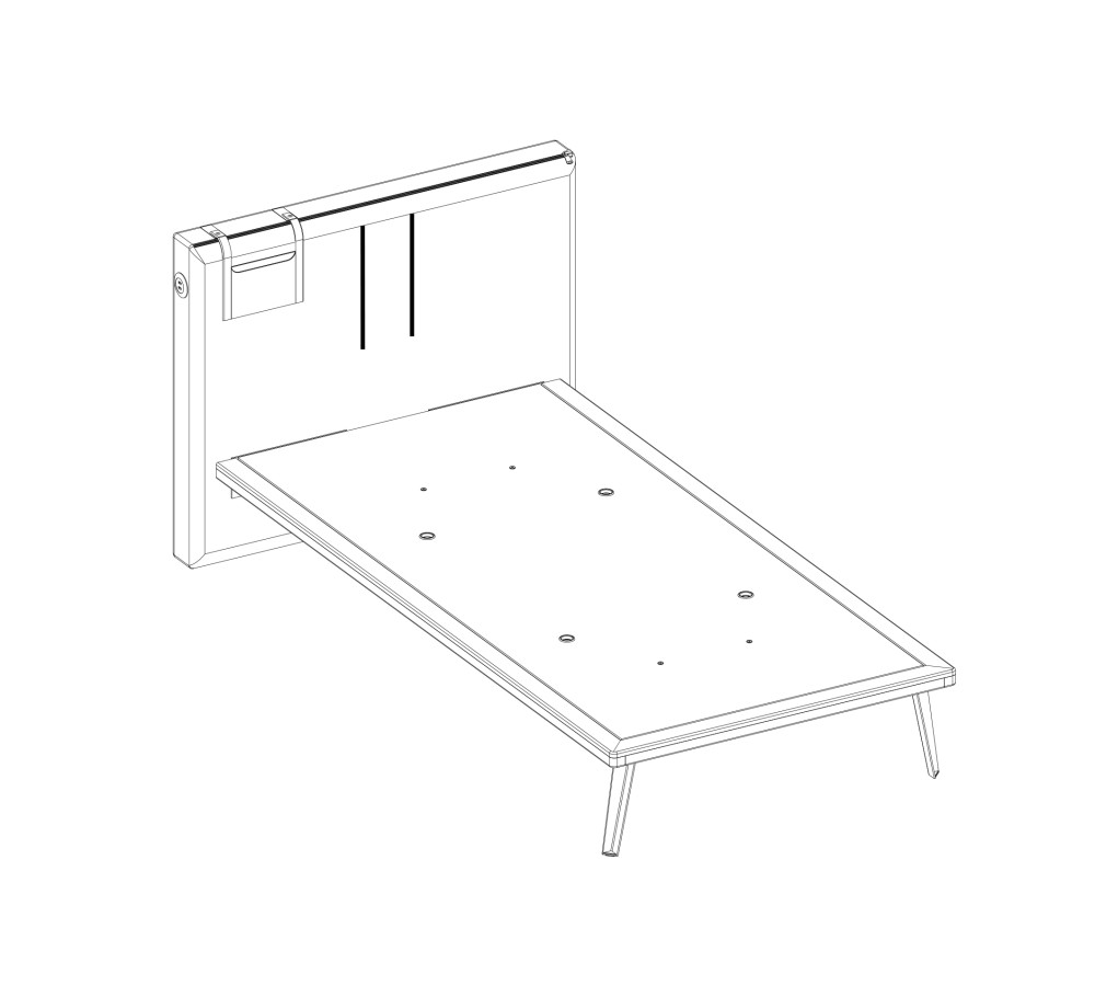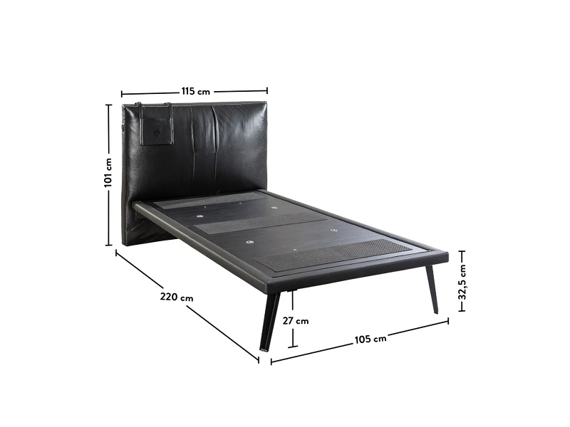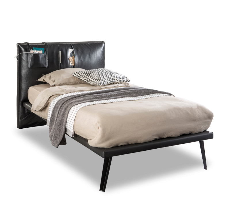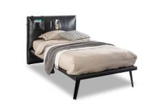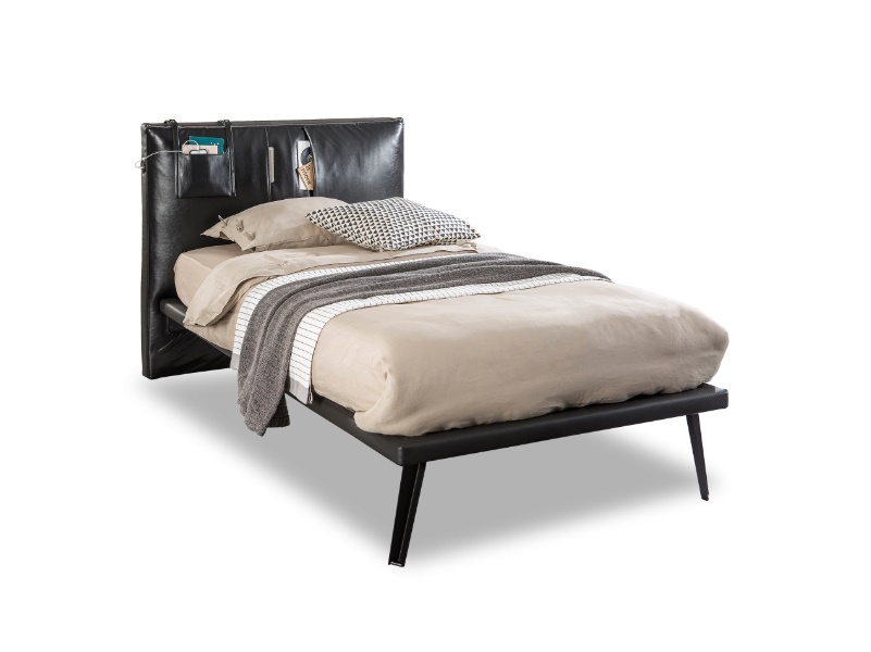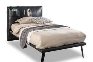 Tablia patului este tapitata cu piele ecologica si are compartimente pentru depozitare.