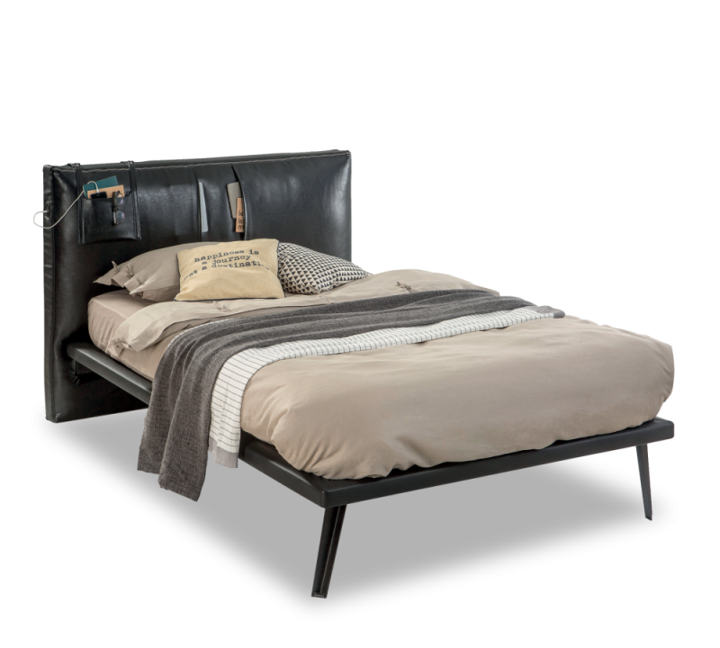 Tablia patului este tapitata cu piele ecologica si are compartimente pentru depozitare.