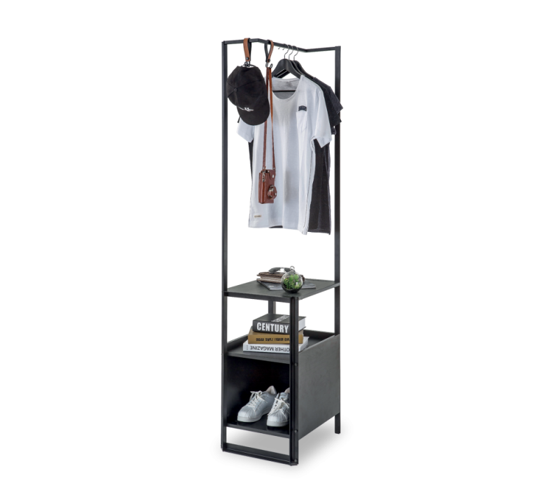 Biblioteca are spatii pentru depozitarea si aranjarea diverselor obiecte si un suport pentru umerase.