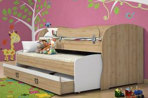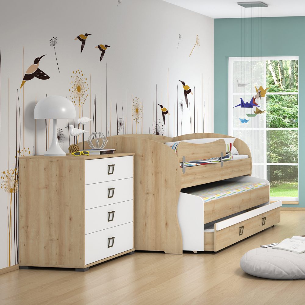 Pat (90x200cm) cu pat suplimentar (80x190cm) KIKI NATURAL