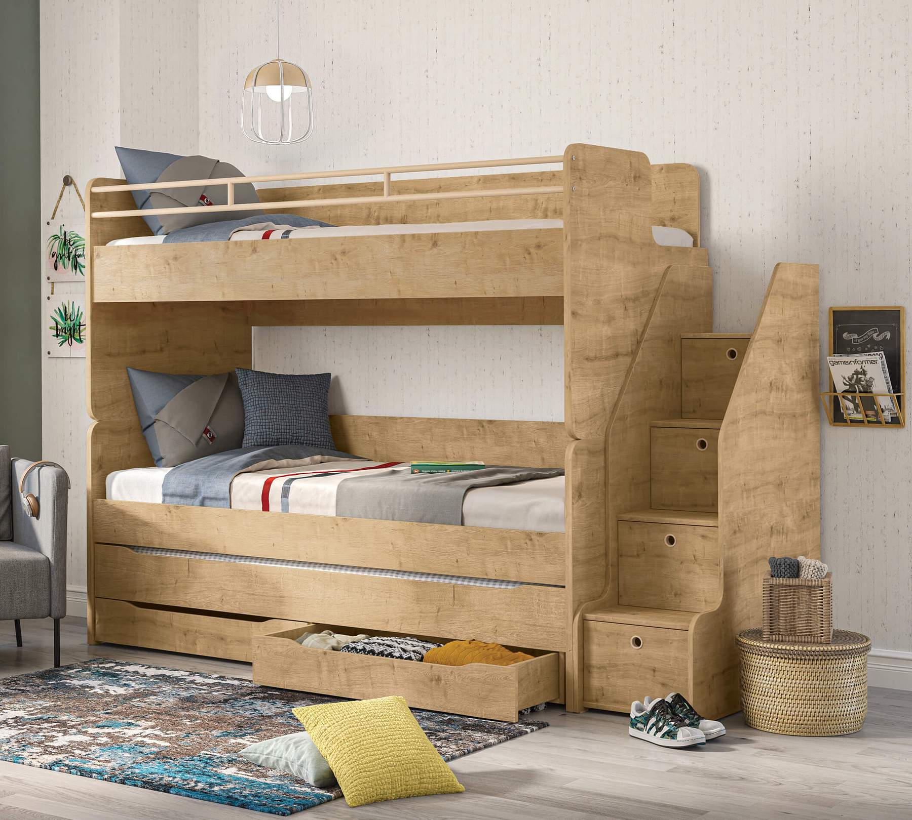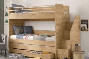 Patul superior are un spatiu pentru carti pe partea laterala care este detasabil.