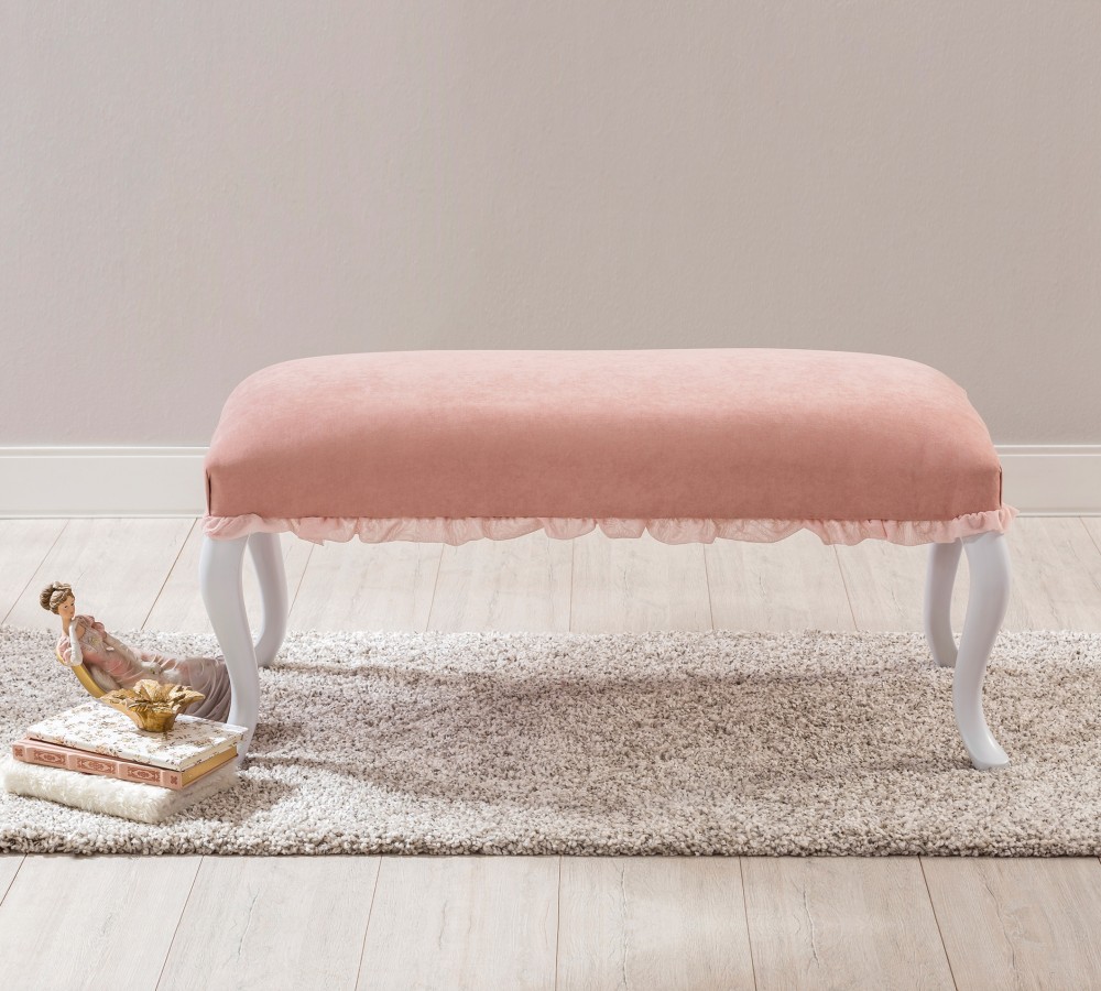 Taburet roz somon DREAM – un accesoriu elegant și funcțional, perfect pentru orice spațiu. Realizat din stofă de calitate și lemn masiv de fag, combină durabilitatea cu un design rafinat în nuanțe de alb și roz somon. Ideal pentru momente de relaxare sau ca element decorativ!